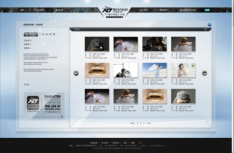 项目描述:Fly数字电影是大连创想视觉文化传媒有限公司成立于2008年,旗下FLY数字电影(Fly Digital Film)工作室,为专业微影视创作机构。基于对影视敏锐的触觉,开阔的眼界以及高标准的专业制作,以独特的文化张力和审美品味打造具有人文气质的微影视品牌。